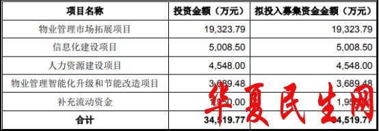 特发服务最终募集资金净额较原计划多8736.87万元。招股说明书显示,公司拟募集资金3.45亿元,分别用于物业管理市场拓展项目、信息化建设项目、人力资源建设项目、物业管理智能化升级和节能改造项目、补充流动资金。