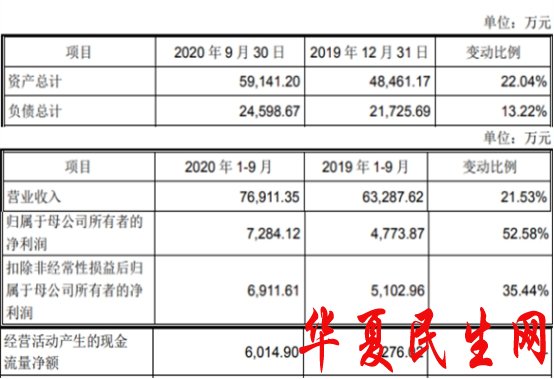 2020年1-9月,公司营收实现7.69亿元,同比增长21.53%;归母净利润7284.12万元,同比增长52.58%;扣非净利润6911.61万元,同比增长35.44%,经营活动产生的现金流量净额6014.90万元,去年同期为-276.02万元。