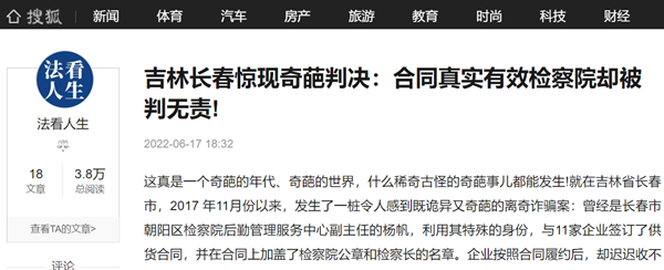 本站讯 这真是一个奇葩的年代、奇葩的世界,什么稀奇古怪的奇葩事儿都能发生!就在吉林省长春市,2017 年11月份以来,发生了一桩令人感到既诡异又奇葩的离奇诈骗案:曾经是长春市朝阳区检察院后勤管理服务中心副主任的杨帆,利用其特殊的身份,与11家企业签订了供货合同,并在合同上加盖了检察院公章和检察长的名章。企业按照合同履约后,却迟迟收不到货款,他们到检察院追讨货款,却被告知:与11家企业签订合同是杨帆的个人行为。随后,杨帆以诈骗罪被判刑入狱。11家企业将检察院起诉至长春市二道区法院,没想到这个法院竟然做出了令他们感到最最奇葩的判决:合同真实有效,合同和验收单上的公章都是真实的,检察院也收到了某公司提供的货并正在使用,但是法院却判决原告要求检察院支付本金和利息没有法律和事实依据,也就是说检察院不需要承担任何支付和赔偿责任!该判决书一经宣判,立即在北国春城长春引发了巨大争议。