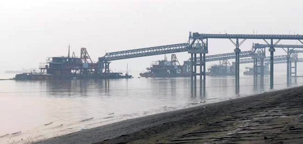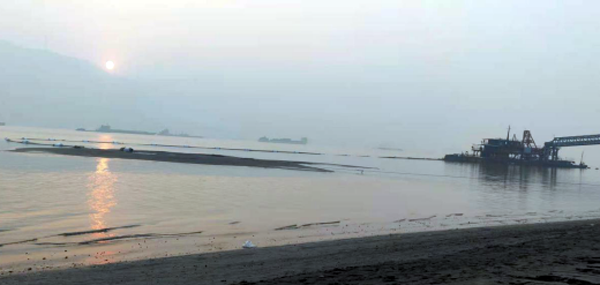 抽沙船上一位工人说,他们是外地人,是被武穴一个管理部门雇佣来的,每小时抽沙有一千三、四百方,抽沙已有三天,现在抽到离巷道300多米远,要抽到七八米深,再抽几天就可以靠船了,码头就可以营运了。