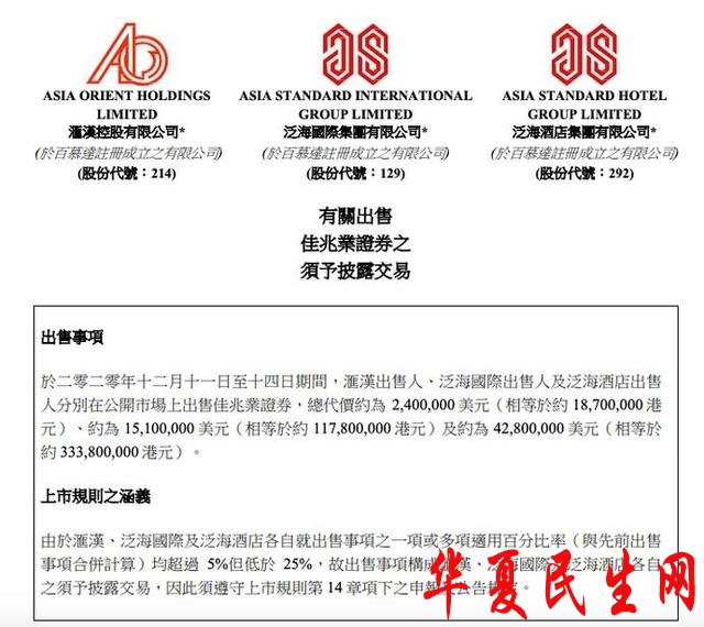 按此计算,合计出售总代价为6030万美元,相当于4.7亿港元。