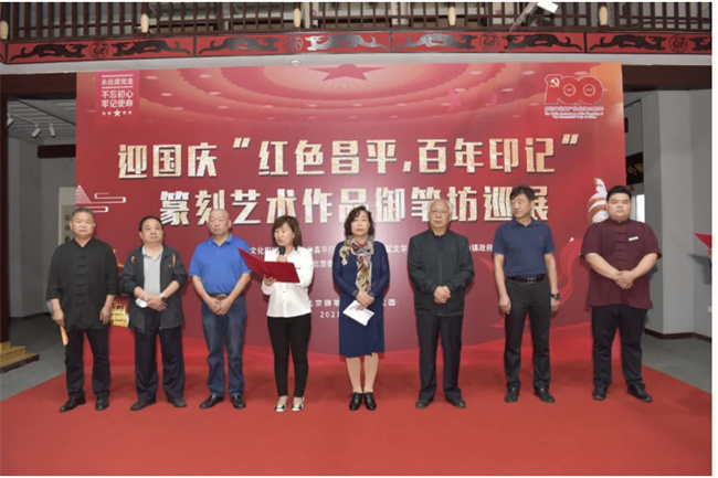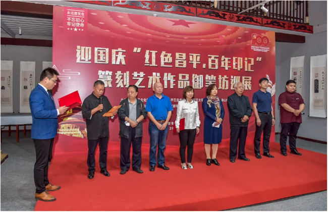为庆祝中国共产党成立 100 周年,喜迎建国72周年,9月26日,由昌平区文化和旅游局、中共昌平区委党史办、昌平区文学艺术届联合会、小汤山镇政府主办的迎国庆“红色昌平 百年印记”篆刻艺术作品巡展在北京御笔坊文化园开幕。展览由昌平区文化馆、军都印社、北京御笔坊承办,用篆刻艺术讲述百年党史,用生动实践创新党史学习教育形式,本次展览持续至10月8日结束。