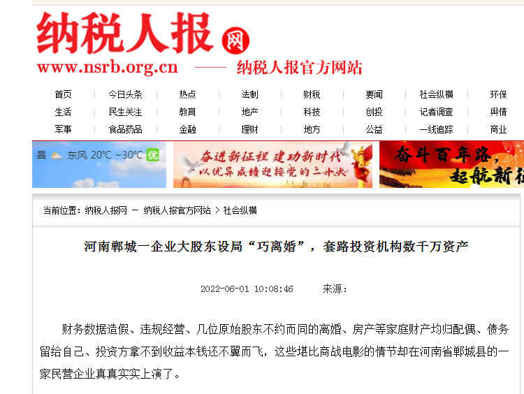 财务数据造假、违规经营、几位原始股东不约而同的离婚、房产等家庭财产均归配偶、债务留给自己、投资方拿不到收益本钱还不翼而飞,这些堪比商战电影的情节却在河南省郸城县的一家民营企业真真实实上演了。
