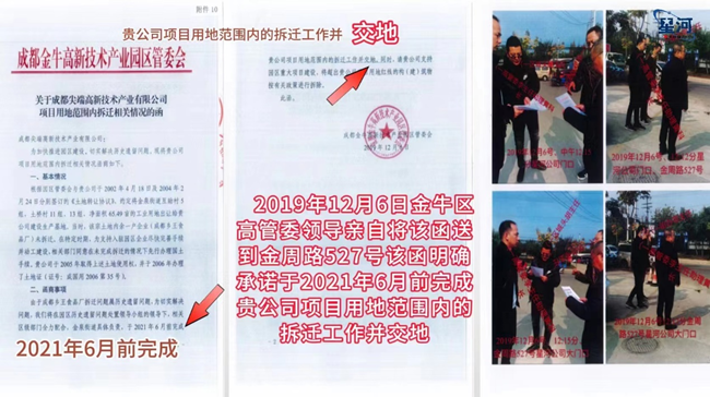 2019年10月9日,成都金牛区高管委还在发给成都尖端公司函说,正在积极协调拆